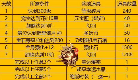 七日封神活动共包含七个目标,每个目标需限时完成,可领取丰厚奖励;累积完成3/5/7个目标还可以额外领取超高价值道具。