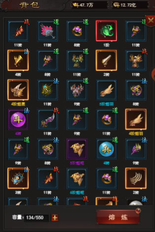 背包系统是游戏中的常规系统之一,玩家在游戏中获得的各式道具,包括装备,都会放入背包。在游戏中可以通过右下角背包按钮打开背包。