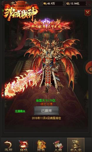 跨服名人堂中有战力榜和等级榜,分别可以浏览全服战力与等级排名前120位的玩家。跨服排位每周一进行跨服分组,玩家该周内只能匹配到同一战区的玩家,每周一各服战斗力排行榜前20名的玩家可以参加跨服王者争霸。