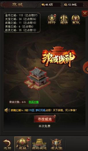 在跨服城战中,玩家可寻找城池,召唤英雄为你攻城略地,英雄分为SR与SSR,激活英雄即可获得对应技能,提升英雄星级可以提升相应技能等级,英雄可进行升星与升级,在战斗胜利后会成为守城英雄。
