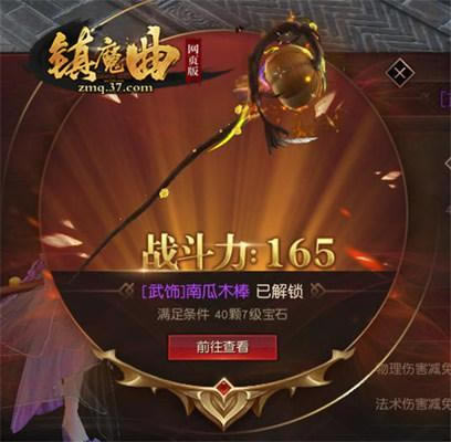 37《镇魔曲网页版》的武饰即为武器外形,当武饰被解锁后,玩家可选择喜欢的外形进行穿戴,武饰可为武器提供较多的属性加成,切换穿戴外形不影响属性,游戏目前每个角色只开放了九阶武饰,如果镶嵌足够多的高级宝石,还能解锁更高阶的武饰。