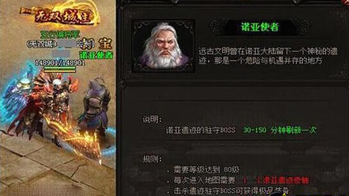 相传,远古文明曾经在诺亚大陆留下了一个神秘的遗迹,那是一个危险却充满机遇的地方。目前,站在所有BOSS“食物链”顶端的强者遗迹之王潜藏在傲天《赤月传说2》诺亚遗迹第五层。