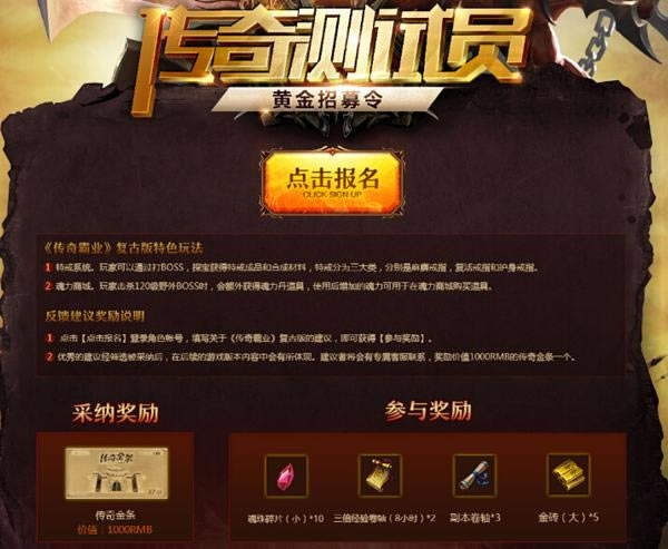 您的每一个建议,我们都无比重视。在与你携手玛法大陆的温暖时光,我们认真聆听。诚邀您点击报名参与其中,对《传奇霸业》复古版提出建议或想法,即可赢取奖励。若您的建议经筛选后被采纳,还将获得价值1000元的周大福限量定制款“传奇金条”一根。时光太短暂,有你在身边,我们将有更多感动与彩虹。