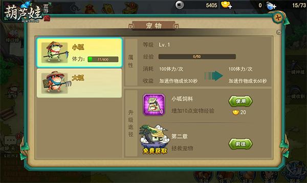 此外,农场内还加入了宠物玩法,用以加速作物的生长。宠物小呱和大呱都采用了原漫中的蛤蟆造型,让玩家想起那个忠心耿耿的蛤蟆精,勾起内心深处的柔情。农场中的一键种植与一键收割按键,可以使玩家迅速便捷地种植并获得回报。