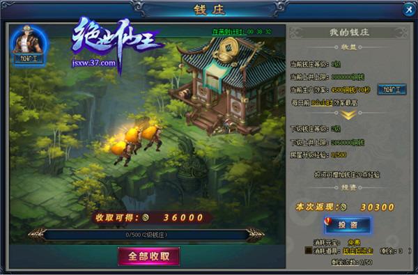 37《绝世仙王》的钱庄每天有投资次数上限,投资次数用完就无法继续投资了,但是VIP可以提升投资高投资上限,【钱庄投资卡】可以代替元宝进行投资,当有了钱庄之后,会自带一个矿工拼命赚取铜钱,矿工暂时只有游戏礼包和VIP等级礼包两个方式可以获得。