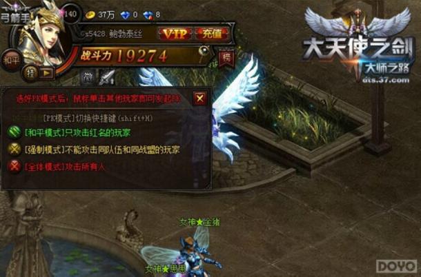 在37《大天使之剑》中,玩家可以在一定限度内与其他玩家PK,切磋武艺,条件如下: