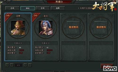 想要招募《大将军》神将“赵云”可不是一件容易的事情。需要玩家等级达到65级,官职要求达到22阶,消耗100000将魂才可以哦!说道等级要求这个对于很多玩家来说还是很普遍,但是新玩家还需要努力下了!想要快速的提高功勋和威望还要各位将军积极的参与国战,和四国演义了!