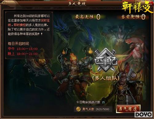 多人竞技场顾名思义就是多人PK的场所,此间3名玩家可各自带1名门客进行组队,与其他同样队伍的玩家进行实时匹配竞技PK,无论胜负两队组员都能获得勇气点数。勇气点数可用于兑换勇气商店中的高级装备和道具。