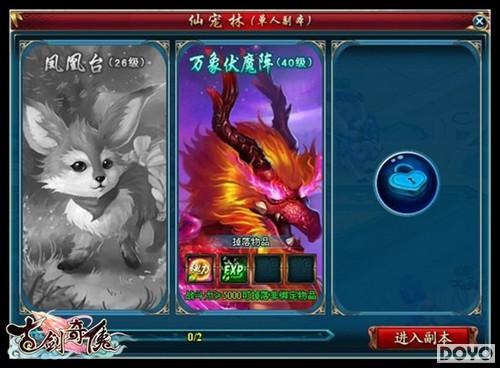 作为终极封测全新加入的宠物副本,91wan《古剑奇侠》万象伏魔阵采用的是横向地图切割模式,一张完整的副本地图将被划分出16个区域, 每个区域都有各种小怪以及首领boss坐镇其中。想要进入到下一个区域挑战的玩家,必须击杀当前区域的所有怪物,才能够获得继续挑战的资格哦!