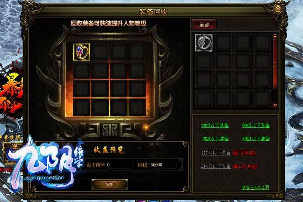 4、装备回收:多余装备用于回收,获取大量的经验值!