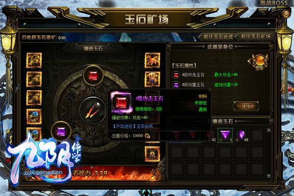 玩家们可以在玉石矿场中获得大量的宝石进行合成,合成后镶嵌到装备上为装备提供全方位属性加成,进而提升人物的战斗力。