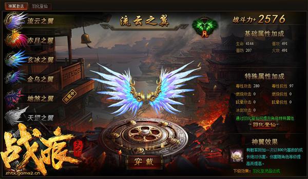 秋雅:是的,我之所以玩《战痕天下》,就是冲着那bulingbuling的神翼来的。神翼系统共有八种不同风格的神翼,每个神翼的激活条件都是不一样的。玩家激活并穿戴神翼, 能给角色带来大量的属性加成。还有就是通过不断的学习、羽化,还能不断提升神翼的品质,最高能达到仙品。仙品级别的神翼给角色加成的属性是非常之多的。