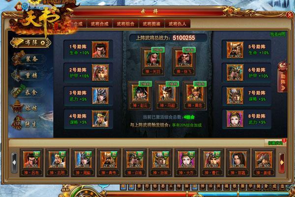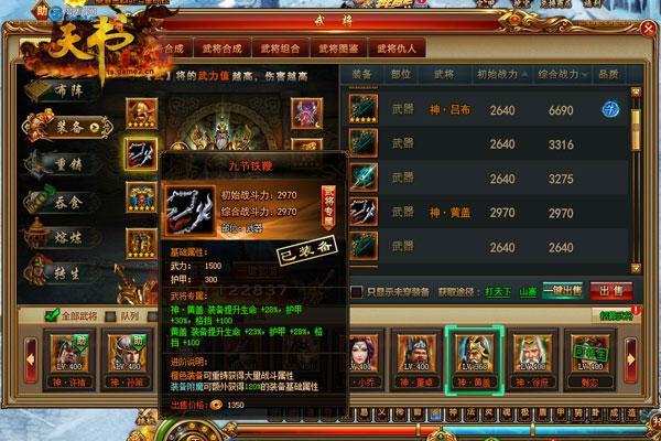 在新版武将谱中,玩家们的武将得到了更多的培养方式、以及资源获取途径。你从没想过单件武将装备的战力过万,更别说十三名武将触发N个武将组合提升成吨的战斗力加成。而这些,在新版本中都有可能!