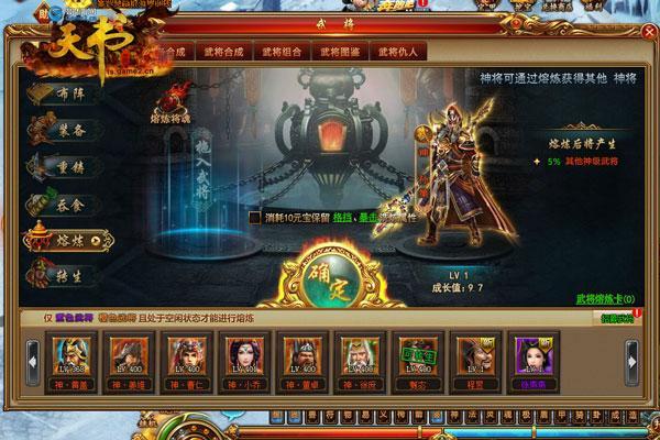 《天书世界》新版武将图谱——稀有武将终出山!在新版本中,增加了将魂熔炼玩法,玩家可以将自己多余的将魂进行熔炼获得其他武将将魂,而将魂熔炼有着三大优势: