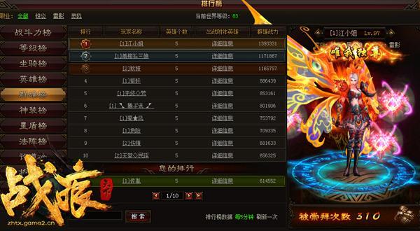 半山:好的。《战痕天下》的群雄榜比的就是其实就是出战英雄加附体英雄的战斗力的总和,所以想要提升群雄榜的排名, 就得增加出战英雄和附体英雄的战斗力。