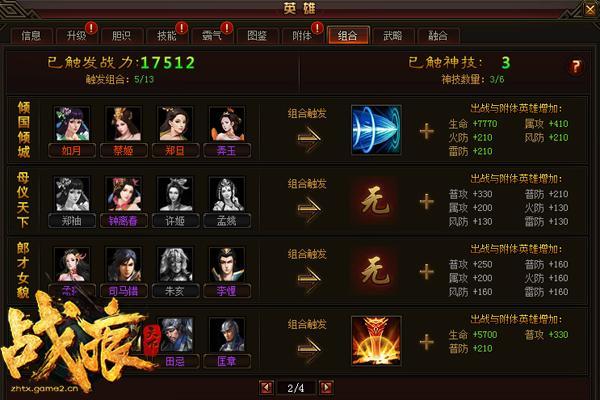 2.附体英雄一定要组合出战。附体英雄只能有四个,如果是构成组合的话,除了可以激发神技外,增加的战斗力也很多。