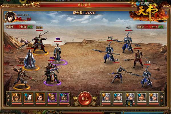 1、玩家人物不用亲自上阵,只需将武将排兵布阵好,便遣其出战;