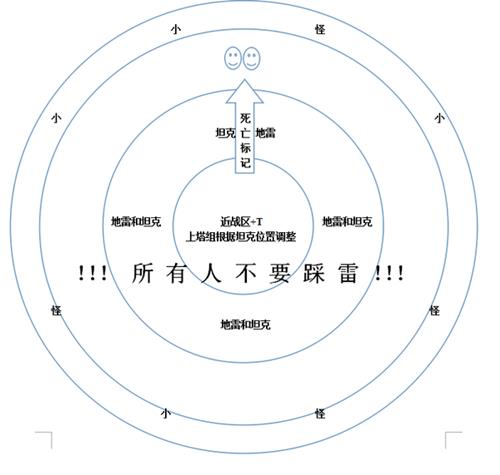 坦克不断带到地雷上直到坦克死掉,被死亡标记的人第一时间去坦克后边破坦克盾,破盾之后坦克挂dot不用刻意点(在下一個出來之前殺掉就可以)。如果近战区地雷很多,骑士无敌排雷其他人远离。