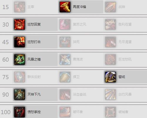 单体战斗天赋为:再度冲锋——狂怒回复——狂怒打击——风暴之锤——警戒——天神下凡——愤怒掌控。